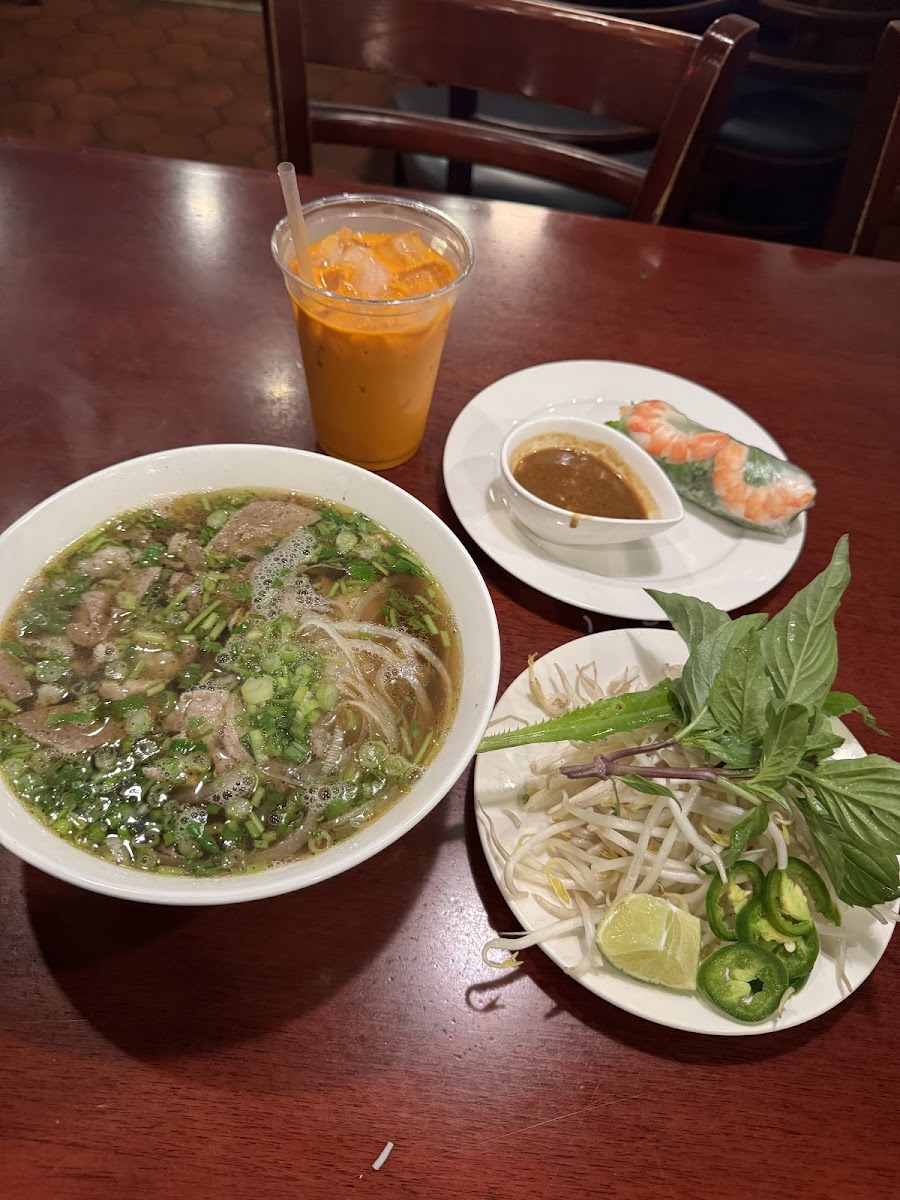 Came in at 11pm on a cold Monday night looking for a nice warm meal, they delivered that and much more. The beef pho with brisket was amazing as well as the summer rolls. My girlfriend got a shrimp pho, and the shrimp was fully cooked and hot to the touch- she said it was very yummy! She also got the thai tea, which she said was classic and very good. I got the mango smoothie which is very creamy and delicious, but lighter on the mango flavor, which wasn’t a problem for me. The atmosphere is also very nice, it’s a cozy, well-decorated little space with old Anthony Bourdain episodes playing on the TV.